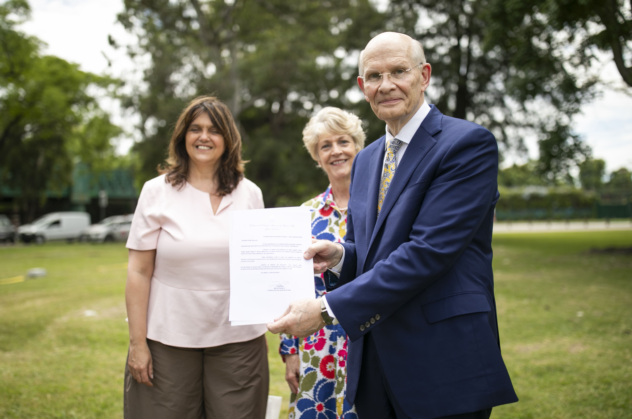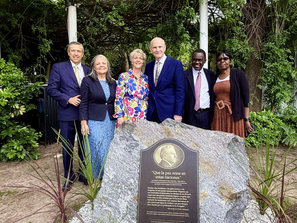 En la foto, élder Dale G. Renlund, acompañado por su esposa, Ruth; el élder Edward Dube, de la Presidencia de los Setenta, y su esposa, Naume; junto con los miembros de la Presidencia del Área Sudamérica Sur: el élder Joaquín E. Costa y su esposa, Renée; el élder Alan R. Walker y su esposa, Inés; y el élder Eduardo Gavarret y su esposa, Norma, junto a Maria del Pilar Bosca, secretaria de Culto de la Ciudad de Buenos Aires.2025 by Intellectual Reserve, Inc. All rights reserved.Aquella oración, pronunciada cuando la Iglesia contaba con apenas 600.000 miembros en todo el mundo, incluyó una profecía que comparó el crecimiento de la Iglesia en esta región con una bellota que, con el tiempo, se convertiría en un poderoso roble. Un siglo después, ese crecimiento es una realidad viva en millones de hogares sudamericanos.