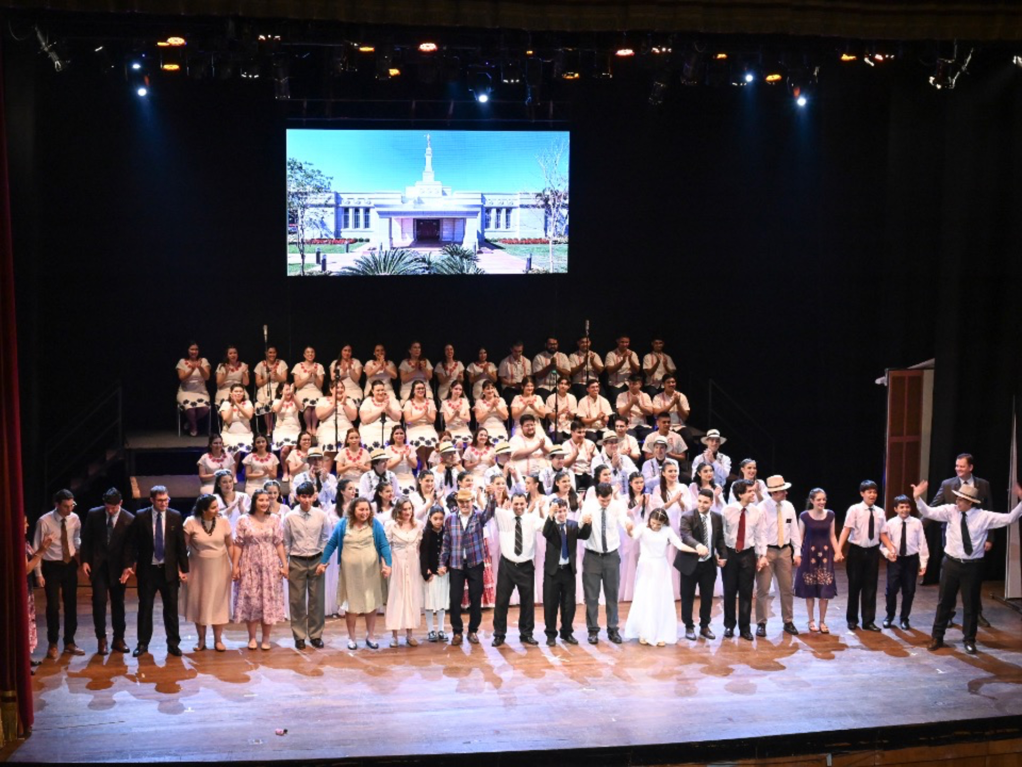 El élder Gary E. Stevenson, del Cuórum de los Doce Apóstoles, encabezó la celebración acompañada por su esposa, la hermana Lesa Stevenson. “Fue impresionante ver sus corazones llenos de felicidad y alegría, celebrando este evento junto con todos los demás Santos chilenos del país que se conectaron por la transmisión”, dijo. “Nos emocionó ver la puesta en escena, escuchar la música y ver las sonrisas en los rostros de todos, tanto del público como de quienes participaron como elenco y músicos”.