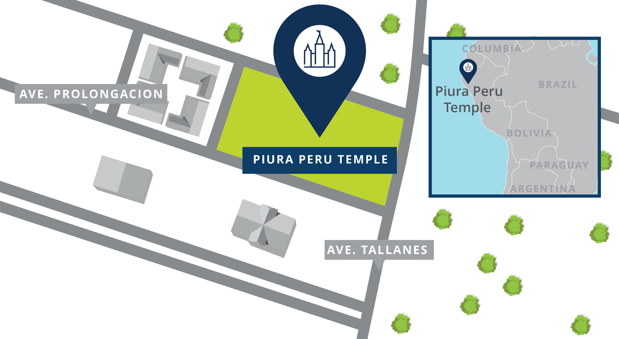 © 2025 by Intellectual Reserve, Inc. All rights reserved.La Primera Presidencia de La Iglesia de Jesucristo de los Santos de los Últimos Días anunció la ubicación del Templo de Piura, en Perú, y publicó una representación artística de su exterior. Este templo fue dado a conocer por primera vez el 1 de octubre de 2023 por el presidente de la Iglesia, Russell M. Nelson.