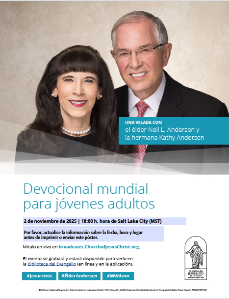 Download PhotoSe invita a los jóvenes adultos de La Iglesia de Jesucristo de los Santos de los Últimos Días a acercarse más a Jesucristo al asistir a la transmisión del Devocional mundial para jóvenes adultos titulado “El profeta y el templo nos dirigen a Jesucristo”. La transmisión estará disponible el 2 de noviembre de 2025 en las Áreas de Norteamérica, Centroamérica y Sudamérica y el 9 de noviembre en otras Áreas.