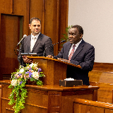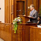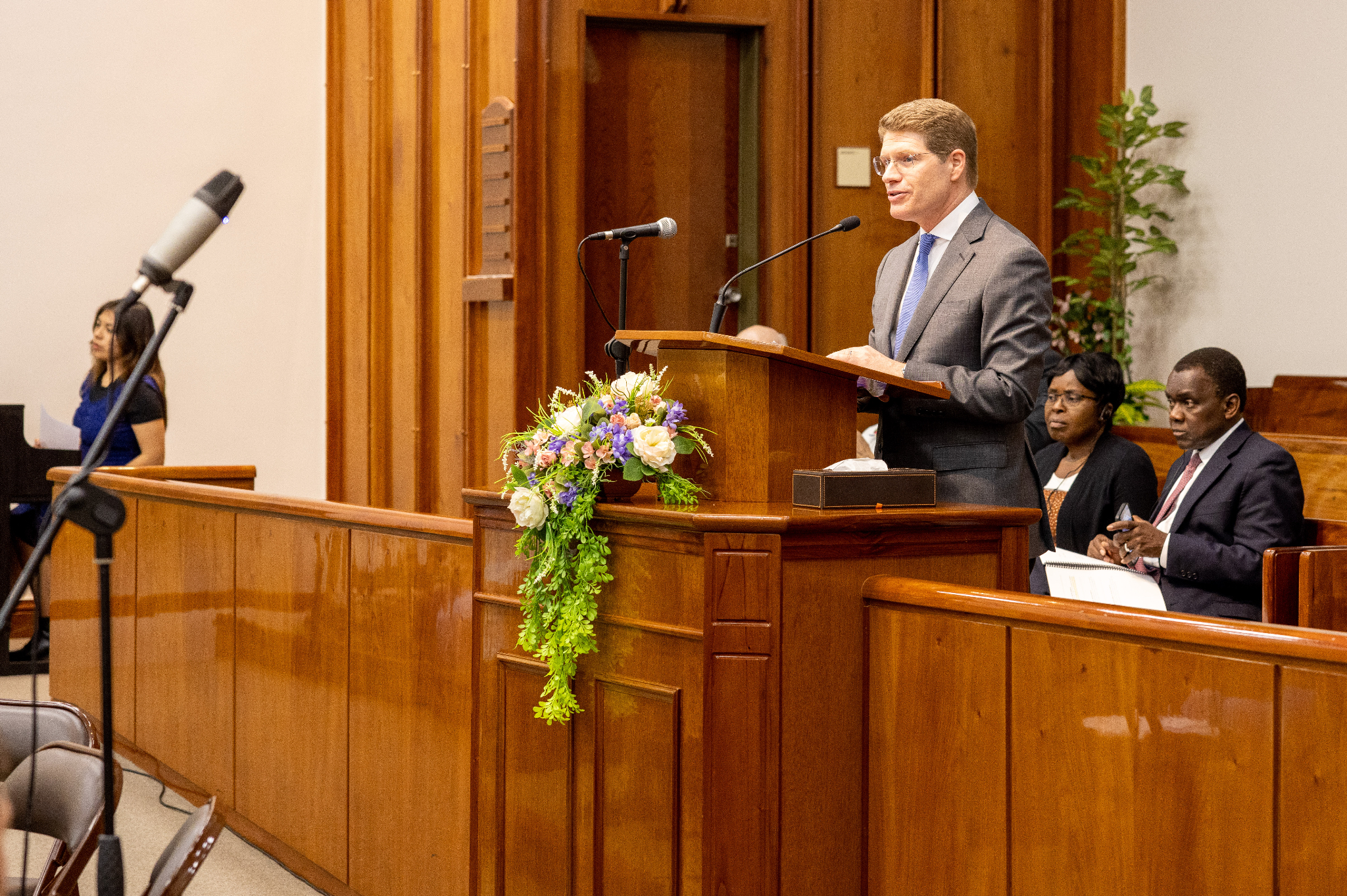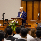 Concluyó testificando de que Jesucristo vive y que dirige Su Iglesia por medio de profetas vivientes, videntes y reveladores. “Tenemos líderes que nos dan dirección. Si seguimos al profeta y mantenemos nuestros ojos puestos en Cristo, seremos llenos de Su luz.”