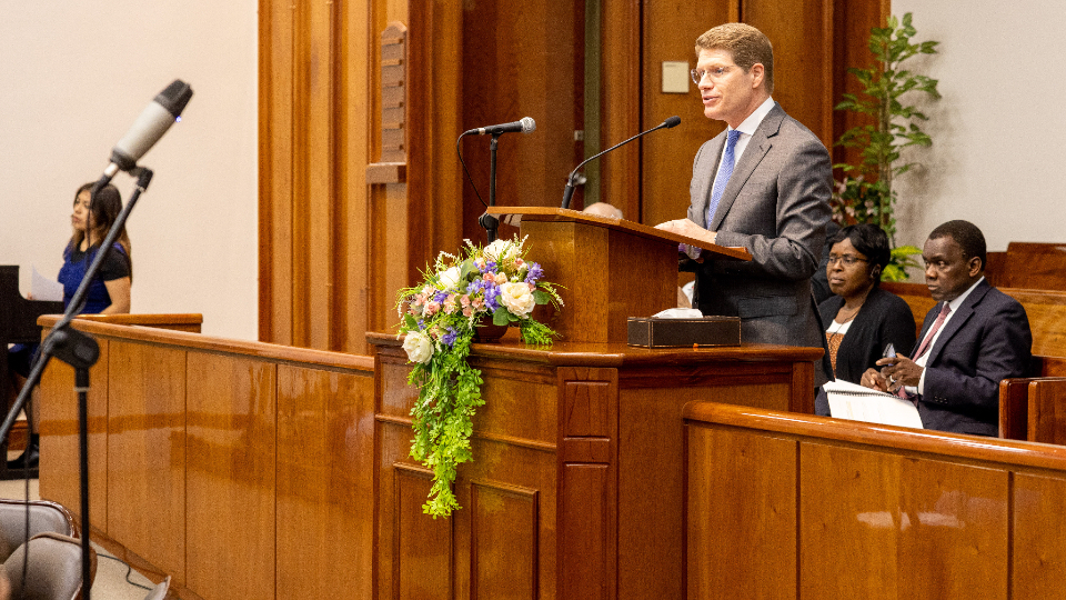 El élder Edward Dube, de la Presidencia de los Setenta, compartió un mensaje enfocado en la importancia de tener una visión clara y espiritual en la vida. Recordó que antes de conocer la Iglesia, vivía sin dirección, pero el Evangelio le dio propósito y luz.