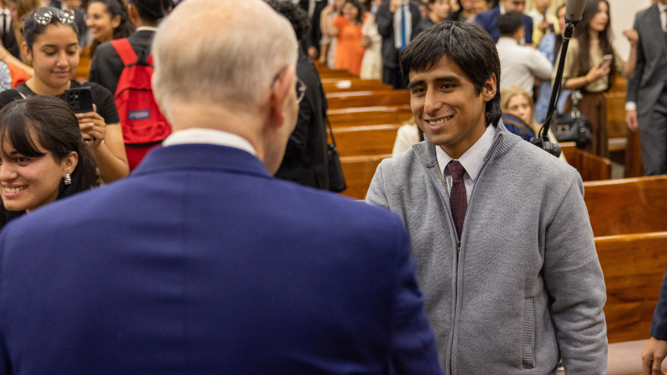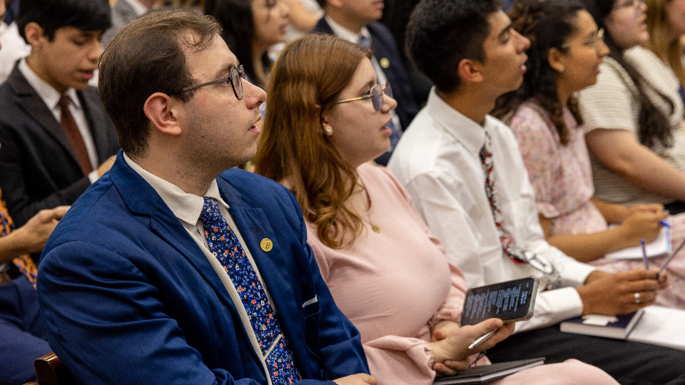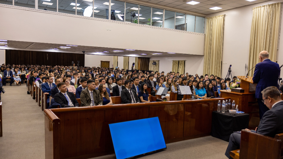 Jóvenes asisten al devocional del élder Dale G. Renlund para jóvenes adultos en Argentina el martes 11 de noviembre de 20252025 by Intellectual Reserve, Inc. All rights reserved.Invitó a los jóvenes a avanzar con fe, sabiendo que cada paso hacia Cristo fortalece Su Iglesia en la tierra. “El Señor hoy habla por medio de Sus profetas y por medio de las Escrituras. Si lo seguimos con fe, nos convertiremos en instrumentos de Su amor y de Su poder.”