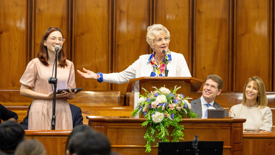 Contó la historia de su tatarabuela, Antoinette, una joven noruega que a los veinte años dejó su país para reunirse con los Santos de los Últimos Días en Estados Unidos, caminando más de mil kilómetros hacia Sion, incluso descalza. “Algunos podrían pensar que fue un gran sacrificio, pero ella no lo vio así, porque tenía una visión clara de quién quería ser y dónde quería estar”, señaló.