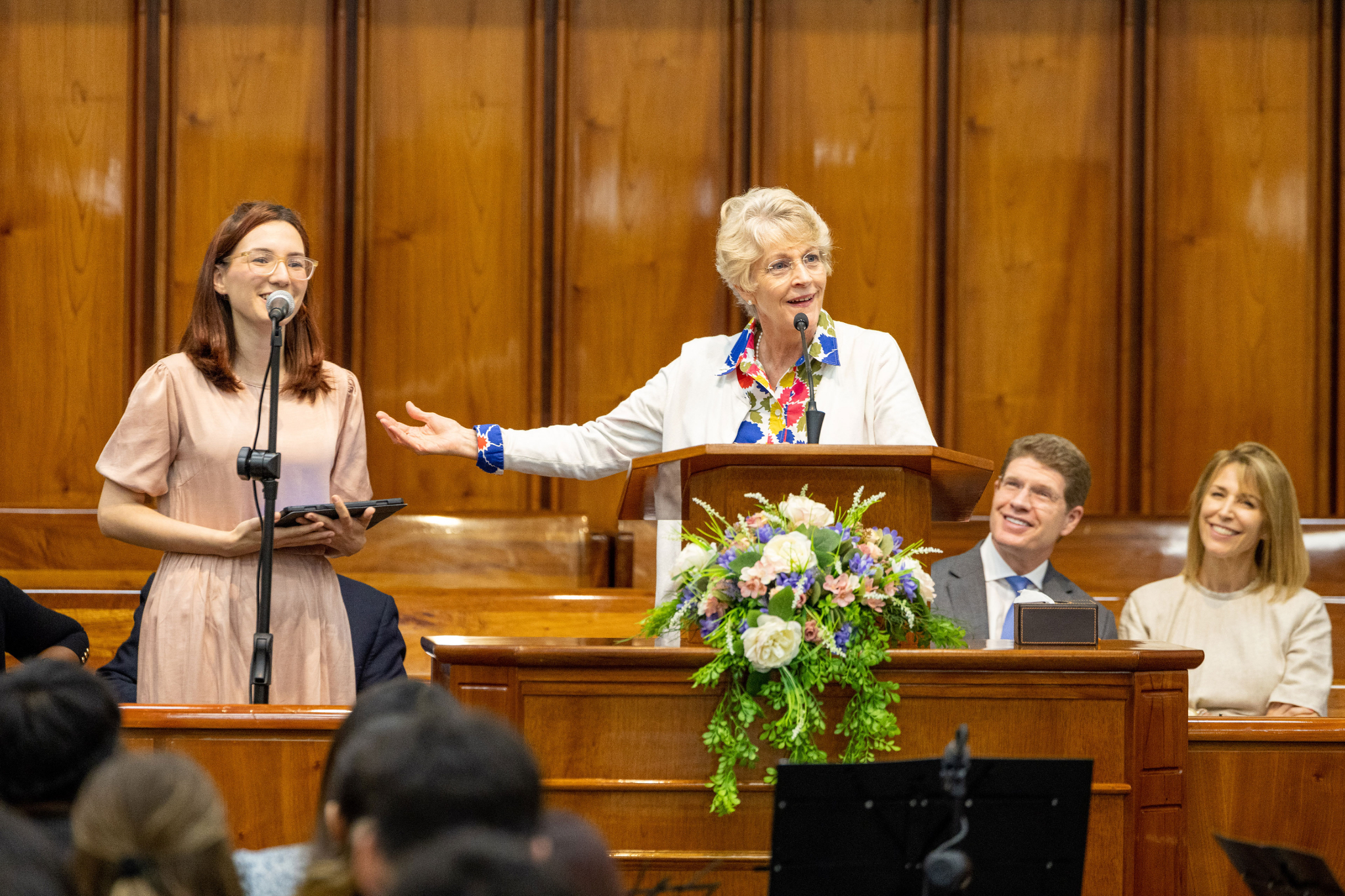 La hermana Ruth Renlund compartió un mensaje sobre el papel de los jóvenes en el progreso de la Iglesia. Recordó las celebraciones del Centenario de la Iglesia en Sudamérica e invitó a los jóvenes a reflexionar sobre los hombres y mujeres que allanaron el camino de la fe, comparándolos con los pioneros de hoy.