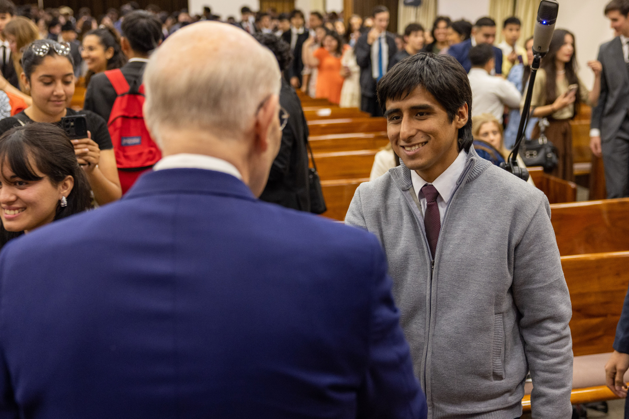 El élder Dale G. Renlund, del Cuórum de los Doce Apóstoles de La Iglesia de Jesucristo de los Santos de los Últimos Días, participó en un devocional especial para jóvenes adultos de Instituto en Argentina. Lo acompañaron su esposa, Ruth Renlund; el élder Edward Dube, de la Presidencia de los Setenta, y su esposa Naume; junto al élder Alan R. Walker, de la Presidencia del Área Sudamérica Sur, y su esposa Inés.