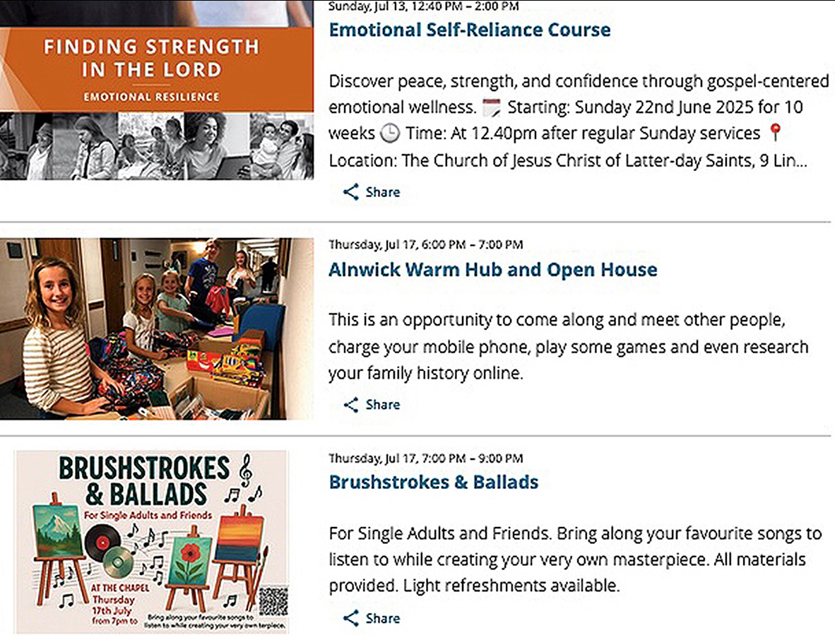 Las nuevas páginas web de barrio y las funciones de Compartir actividades están ayudando a los miembros de La Iglesia de Jesucristo de los Santos de los Últimos Días a invitar a amigos a las actividades y a los servicios de adoración dominicales, lo que brinda una manera sencilla de “amar, compartir e invitar”.