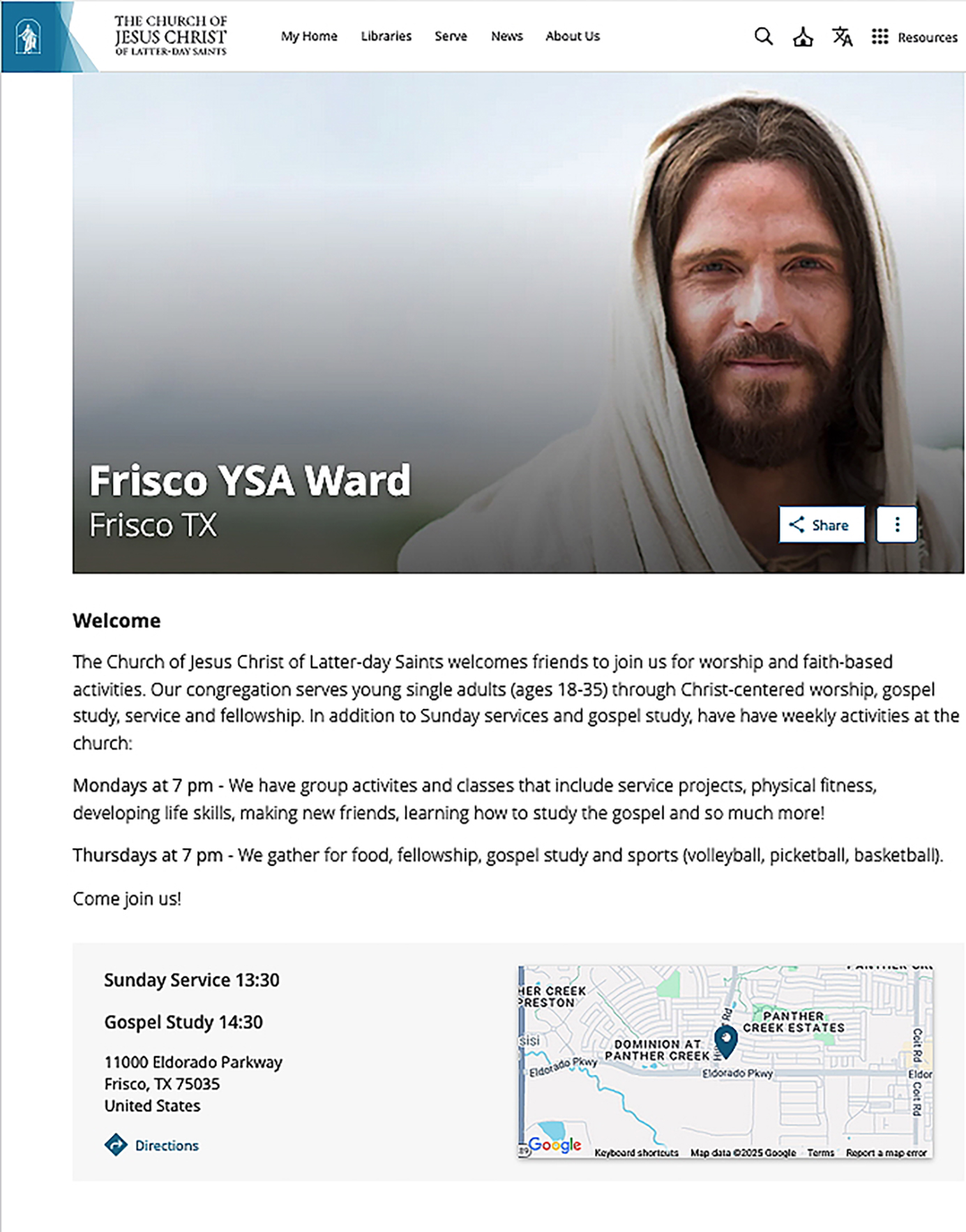 El texto y las imágenes de las páginas web de barrio se pueden personalizar. En las descripciones, se alienta a los creadores del evento a incluir frases como “centrado en Cristo” o “centrado en Jesucristo” e imágenes que recalquen a quién adoran los miembros de La Iglesia de Jesucristo de los Santos de los Últimos Días.