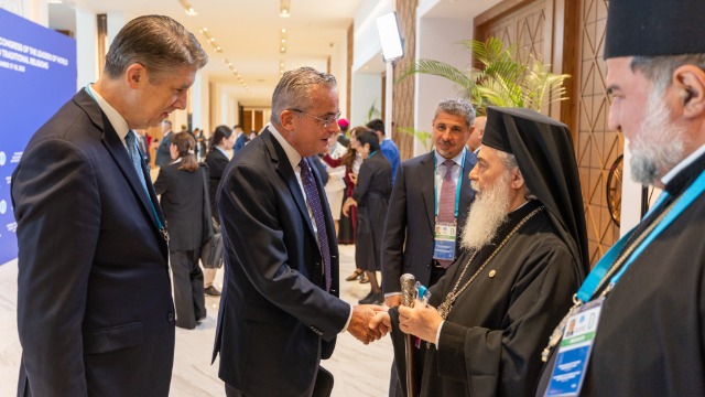 De la Sala de Prensa de España El élder Patrick Kearon, del Cuórum de los Doce Apóstoles, declaró el miércoles 17 de septiembre de 2025, ante un grupo de líderes religiosos de todo el mundo, que en la gran renovación del Templo de Salt Lake que se está llevando a cabo podemos encontrar un modelo para construir un mundo más pacífico.